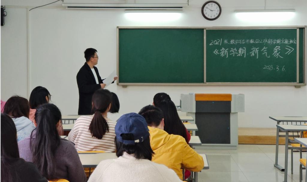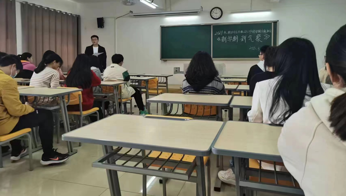 新学期如期而至,为了使同学们在新学期有一个良好的开端,确立新学期的目标和明确对未来的规划,我校williamhill英国官网2021级数学与应用数学(2)班于2023年3月6日在二教322教室召开“新学期新气象”的主题班会,班主任檀雷雷老师和2班全体学生参加会议。