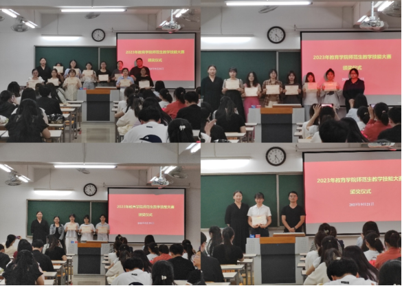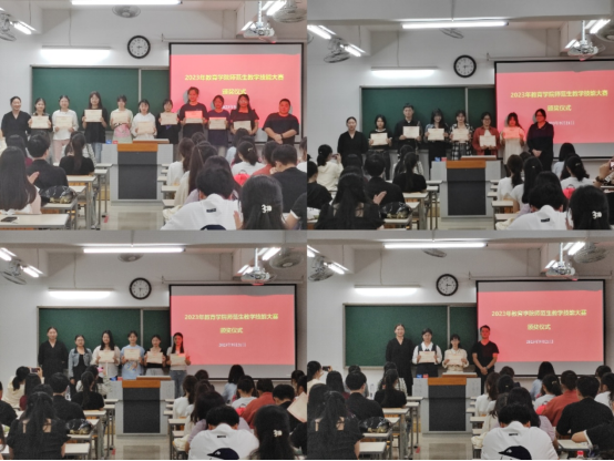 williamhill英国官网师范生教学技能大赛于2023年9月16日正式启动,共分为语文组、数学组、学前组和教具组进行比赛。经过激烈角逐,本次大赛共评选出一等奖20名,二等奖21名,三等奖22名,优秀奖28名,并选出语文组15名同学、数学组10名同学、学前组10名同学和教具组4个小组的同学进入校赛。