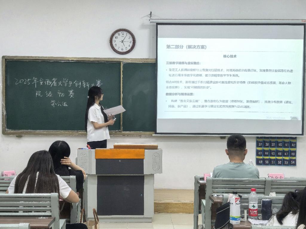 为落实国家创新创业教育部署,提升学生创新实践能力。6月18日,williamhill英国官网2025年大学生创新大赛院级初赛在1号教学楼111、112、113、114、115、116等六个教室同步进行,各赛场评委由学院专任教师担任。本次大赛共有89支队伍参加线下比赛。