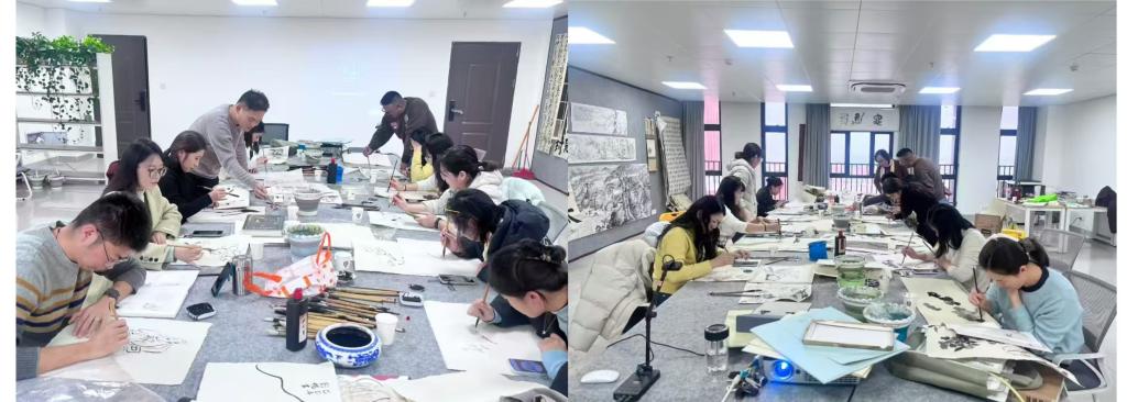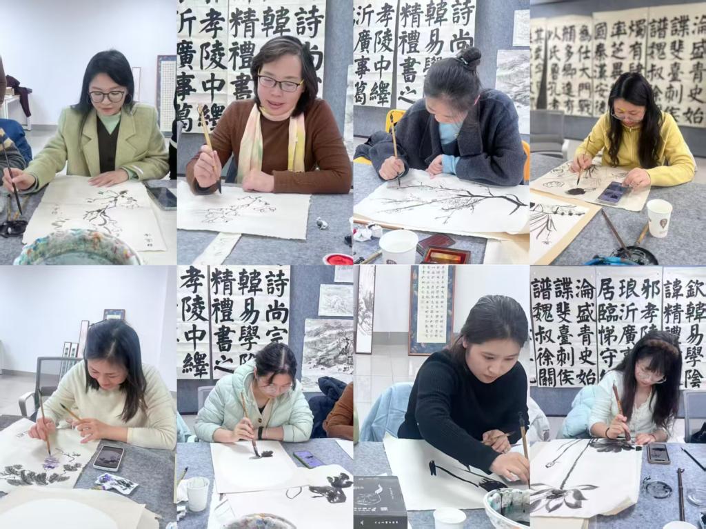 平日里忙于备课、授课、批改作业的老师们,此刻完全沉浸在国画艺术的世界中。凝神静气的勾勒、小心翼翼的晕染,一笔一画都饱含着对传统艺术的敬畏与热爱。大家暂时放下教学工作的忙碌与压力,在笔墨与宣纸的碰撞中舒缓身心、陶冶情操,充分感受着美育带来的浸润与滋养。