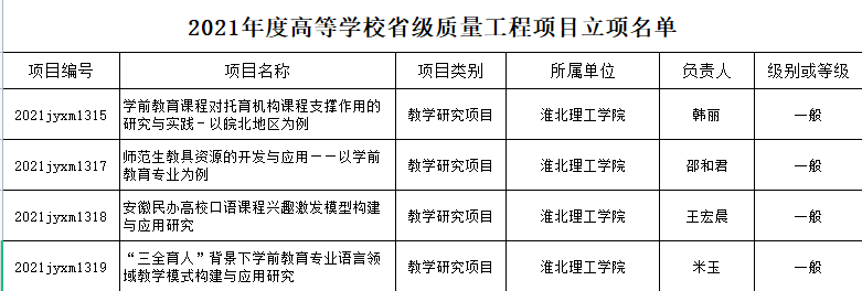 安徽省教育厅关于公布2021年高等学校省级质量工程项目名单的通知