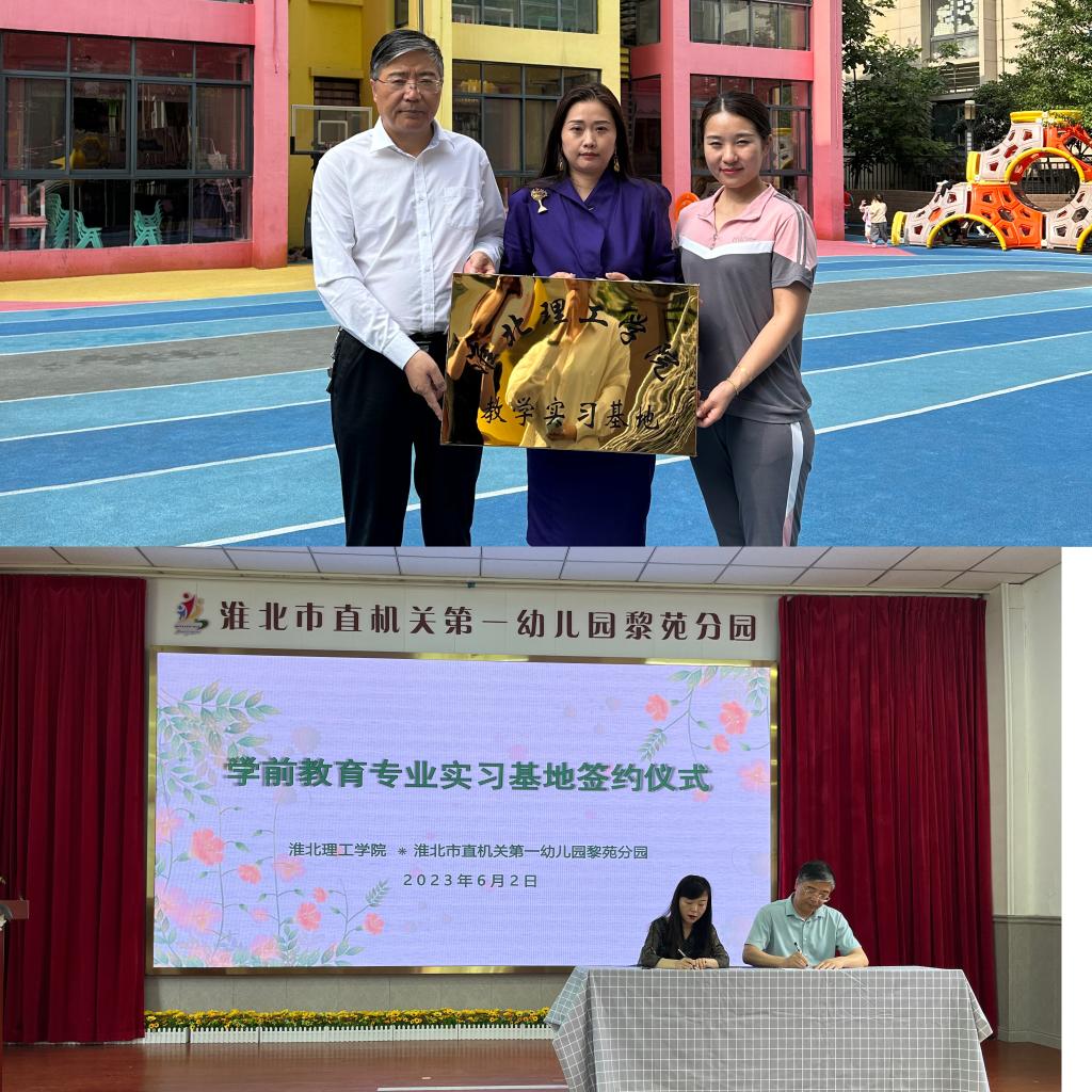 为提升学前教育专业人才培养质量,培养学生实践技能,打造实践育人广阔平台,2023年6月2日上午、6月5日上午,williamhill来到淮北市直机关第一幼儿园国购分园、黎苑分园、凤凰分园,红缨东渡苑幼儿园、大风车幼儿园、杨柳幼儿园,进行实习基地挂牌签约,建立实践教学基地共建关系。williamhill英国官网王家云院长、学前教育教研室负责人尹爽、郗佩佳,各个幼儿园园长以及教师代表出席仪式。