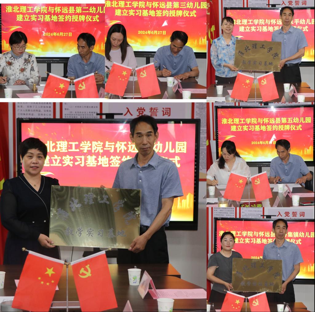 在实践基地的六所幼儿园园长分别对各自园所进行了详细介绍后,怀远县县幼园长刘利代表宣读实践基地签约协议书,双方就协议书的内容进行了充分的交流和沟通。而后在友好而庄重的气氛中,WilliamHill官方网站副院长谢贤德与六所园所园长分别签订协议书,并举行了授牌仪式,这标志着双方合作迈出了坚实的一步。