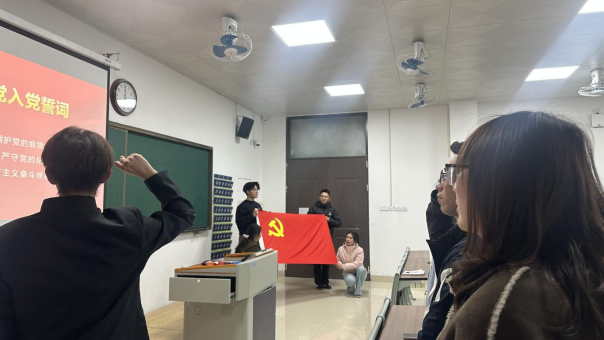 活动最后,全体党员同志面对鲜红的党旗,举起右手重温入党誓词。庄严宣誓,这是青年学子对党的承诺,更是对自身的激励:无论遇到什么困难和挑战,都将坚定信念、勇往直前、不懈奋斗!
