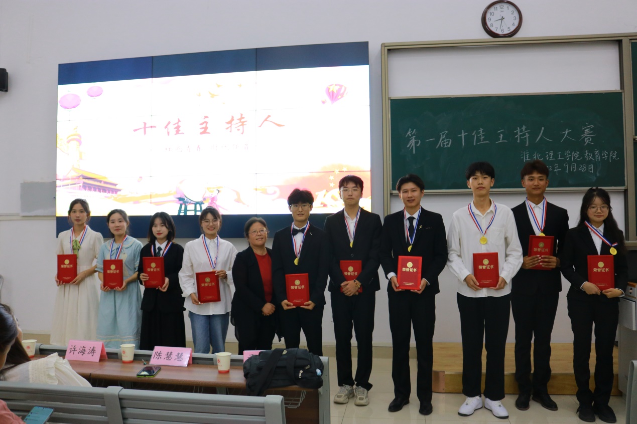 参加本次决赛的选手是从参加初赛的近300多名选手中脱颖而出的。比赛以“喜迎二十大,永远跟党走”班级大合唱比赛为背景,模拟3-5分钟节目主持,参赛选手们精心准备,精神饱满,以不同的主持风格展示了个人的主持魅力,用话筒传递了新时代青年永远跟党走的激情和信念。“十佳主持人大赛”既丰富了同学们的校园文化生活,又为学院人才选拔提供了平等竞争的平台。通过激烈的竞争,最终伍申成、边俊杰等10名同学获得学院“第一届十佳主持人”荣誉称号,学院分管副书记孟向红为获奖选手颁奖。