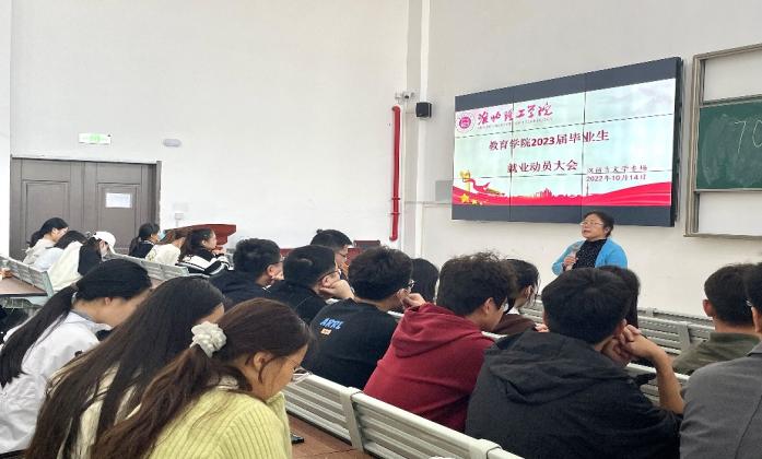 为贯彻落实学校就业工作要求,促进学院毕业生积极就业,提高就业质量,2022年10月14日上午,williamhill在1教121教室分专业召开2023届毕业生就业动员大会,学院分管副书记孟向红、辅导员彭慧敏、何茹雪带领2023届英语和汉语言文学专业毕业生分别参加了动员大会。