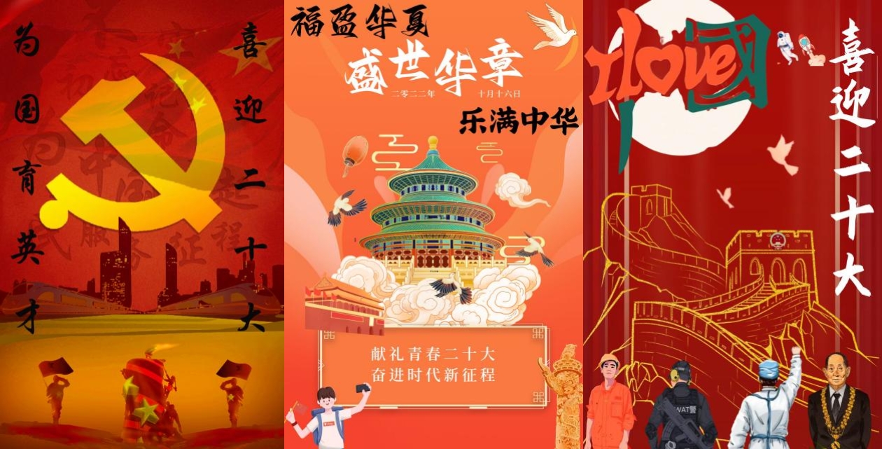 参赛同学围绕学习二十大精神、歌颂党和国家以及在时代洪流中着眼当下的亲身感悟及启发进行设计,大气洒脱的《青春献礼二十大》,灵动明媚的《福盈华夏,乐满中华》,深刻严谨的《敢于逐梦,心向未来》,都展现了同学们从党的百年奋斗历程中汲取的智慧力量和对蓬勃发展的祖国的热爱,体现了同学们对于伟大建党精神的解读与认识。