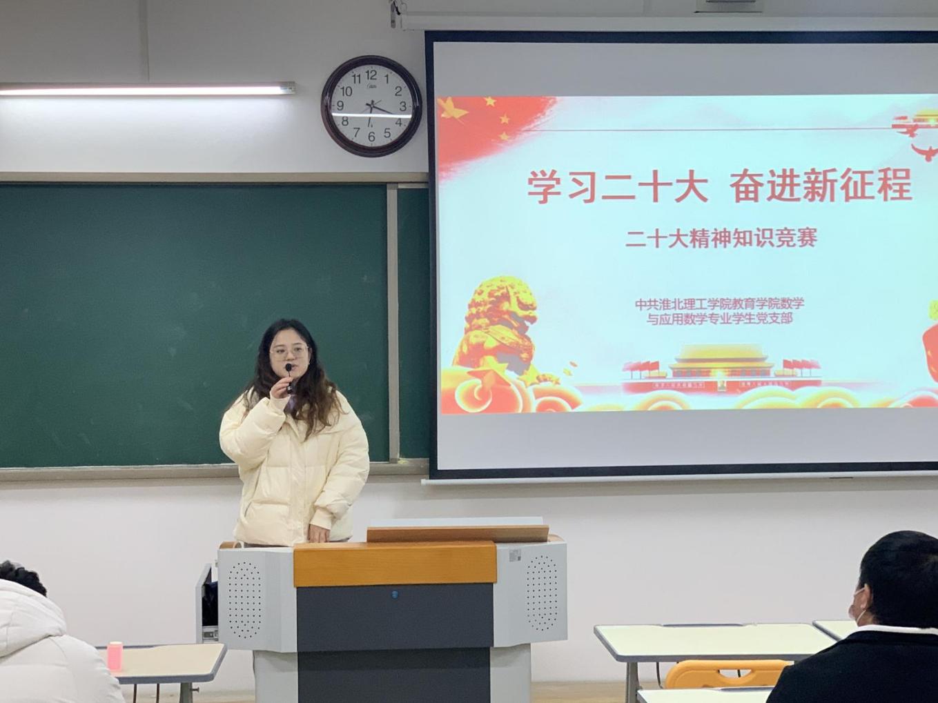 为深入学习宣传贯彻党的二十大精神,回顾党的光辉历史,推动党的二十大精神落地生根、入脑入心。williamhill英国官网数学与应用数学学生党支部积极部署,于12月1日在1教313开展“学习党的二十大精神知识竞赛活动”,活动由支部委员孙虎主持,支部书记陈媛媛、全体支部党员及入党积极分子参加了活动。