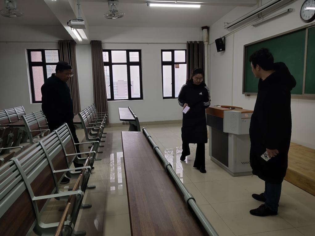 2月18日上午,williamhill英国官网党总支书记、院长王家云带领学院相关人员对1号教学楼、2号教学楼、艺术楼等相关教学环境的安全、卫生等方面进行了认真巡查,要求相关人员做到教学、实验环境整洁卫生,确保新学期的各项教学工作平稳有序。