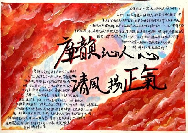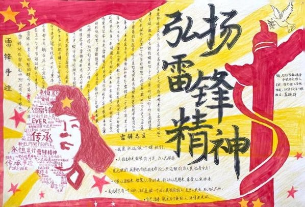 参赛同学以“雷锋精神”为核心,通过介绍雷锋生平感人事迹、绘画雷锋人物形象等方式进行创作。灵动鲜活的《学雷锋,践行动》;多姿多彩的《学雷锋,树新风》;质朴简约的《雷锋日报》。图文并茂,生动活泼,不仅展现出williamhill学子良好的创作功底,更彰显了同学们对雷锋精神的深刻感悟。