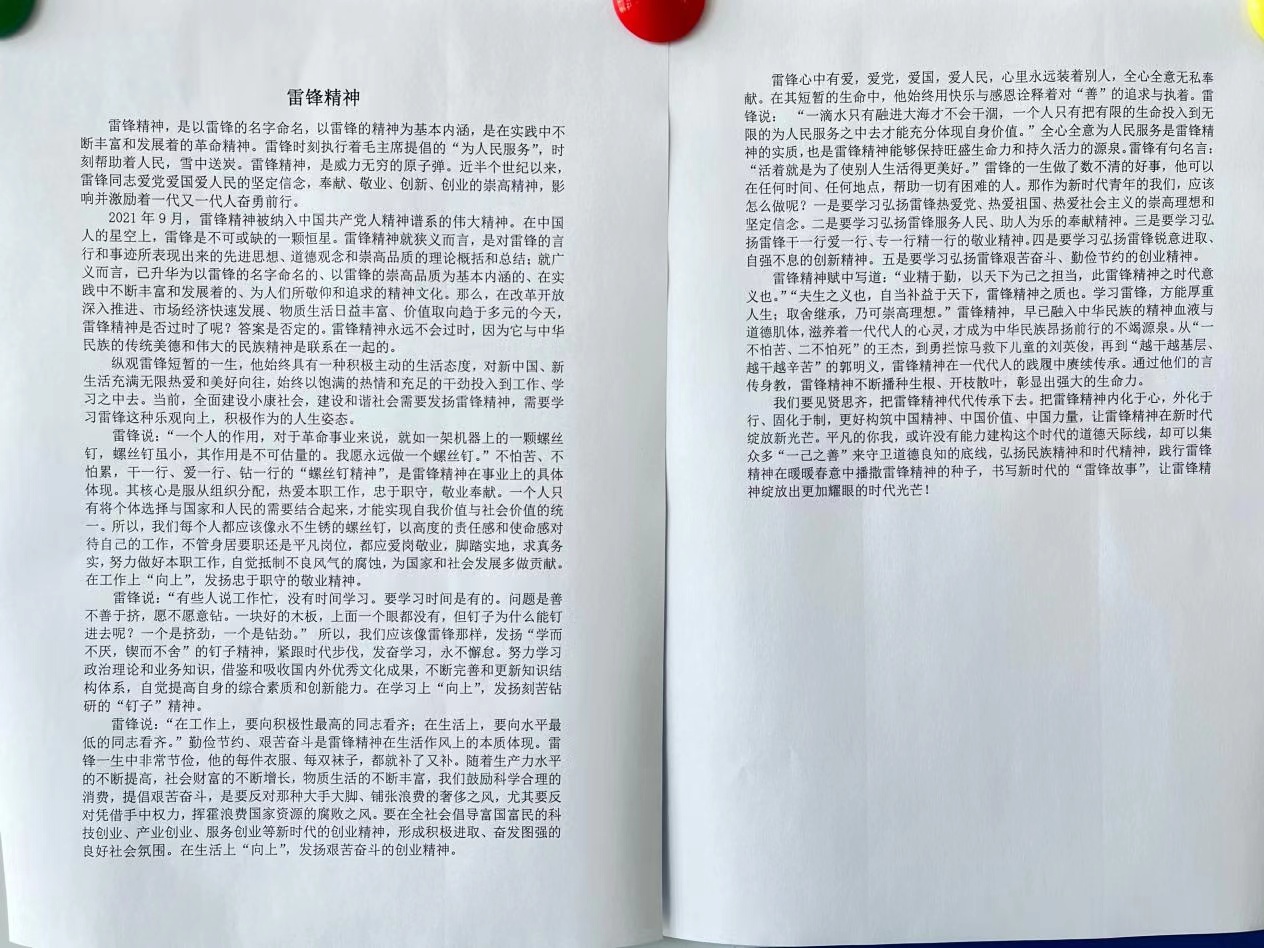 为弘扬雷锋精神,致敬时代先锋,扎实推进学生的思想道德教育,促进学生文明素养的提高。williamhill英国官网在“学雷锋活动月”中组织开展了手抄报比赛及征文活动活动。同学们积极响应,踊跃参与,以自己创作的作品展现对雷锋精神的学习体会。