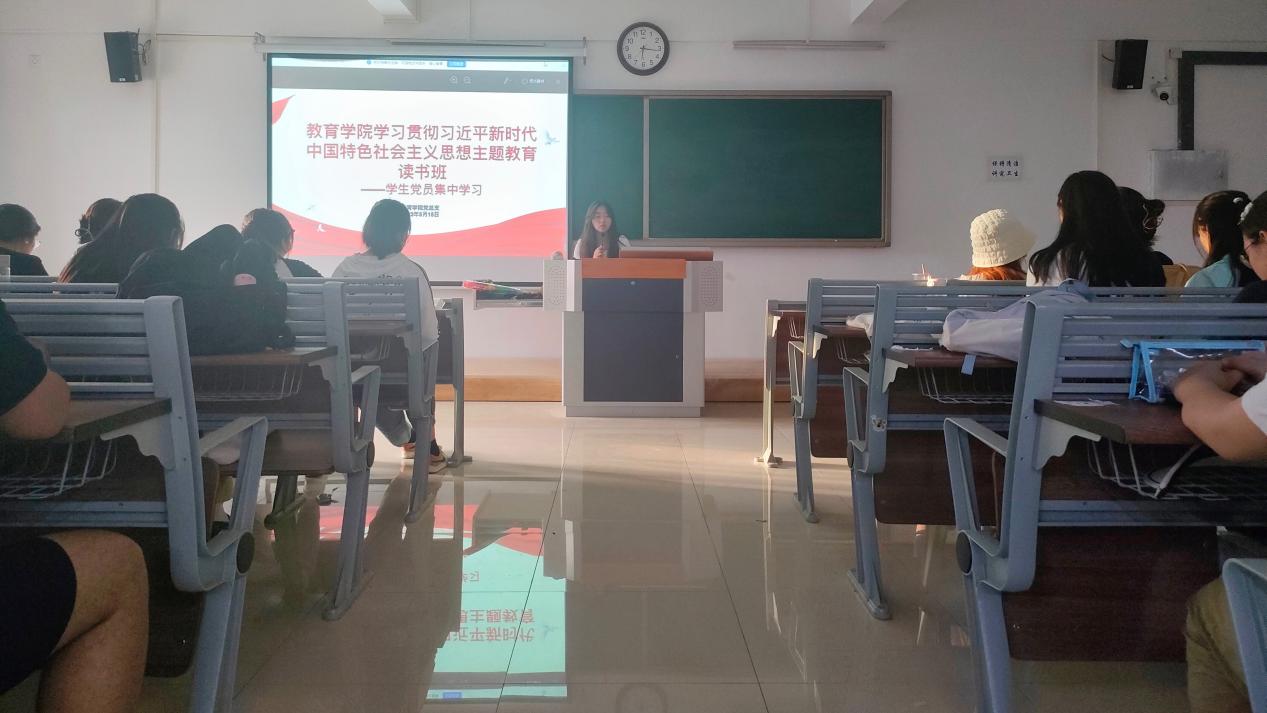 5月15日下午,williamhill英国官网在1教420教室开展学习贯彻习近平新时代中国特色社会主义思想主题教育读书班——学生党员集中学习活动。活动由学院组织员陈慧慧同志主持,各学生党支部书记、学生党员和52名发展对象参加学习活动。