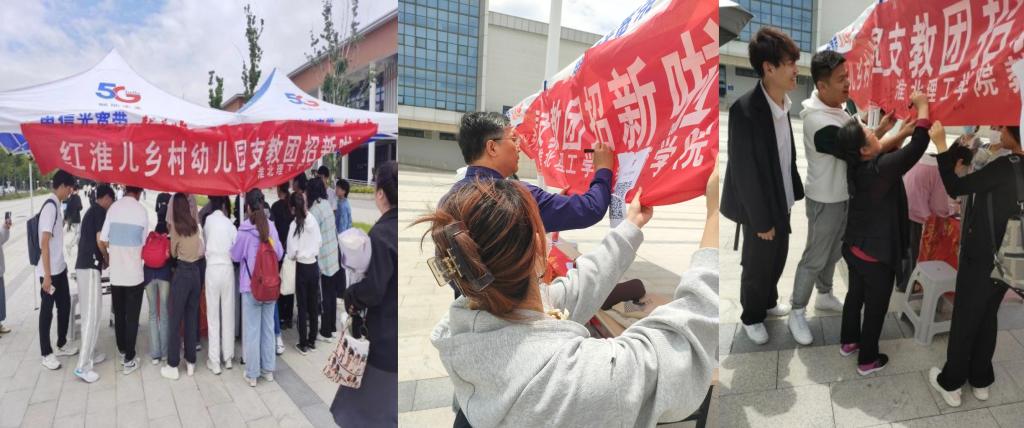 5月24日,红淮儿乡村支教团正式面向全校展开招新活动。红淮儿支教团结合皖北红色文化,致力于服务乡村幼儿,用童心童语讲好领袖故事,传播红色文化,发扬革命传统为工作重点,为村级幼儿园带去丰富的教育资源。教育院长王家云、副院长孟向红一行高度重视红淮儿支教团队建设,现场指导招新工作。