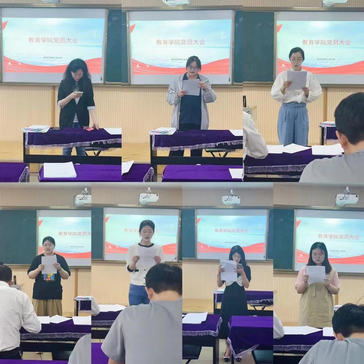 会上,发展对象梁芬奇等7位同志宣读了《入党志愿书》,向党组织汇报了对党的认识、入党动机及有关情况。入党介绍人分别介绍了对7位同志的培养教育考察情况和对其入党的意见。党支部书记马香玉同志代表支委会向大会报告了对7位同志的审查情况,与会党员就7位同志是否符合入党条件进行讨论并发表意见。