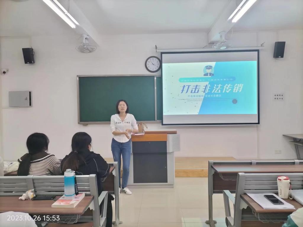 主题班会上,辅导员老师们就传销的概念、传销的途径、传销的产业链,以及如何防范和抵制传销,以PPT形式进行了宣传和预防教育,告诉同学们要擦亮双眼,警惕网贷和校园传销等不法行为,通过主题班会大家收获了预防传销的知识。