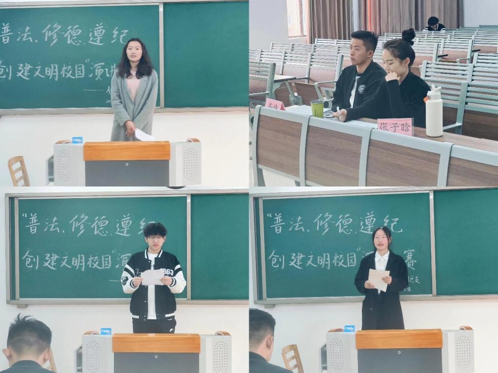 为落实学校《关于开展2023年“普法、修德、遵纪,创建文明校园”专项活动的通知》精神,提高同学们的法律意识,大力弘扬法治精神,创建学风校风优良的文明校园,williamhill英国官网于11月22日下午在2号教学楼412、413、414、415、416教室分别开展以“普法、修德、遵纪,创建文明校园”为主题的演讲比赛。学院2023级辅导员老师担任评委。