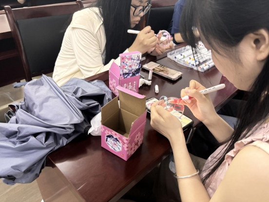 活动开始,工作人员介绍活动内容:同学们需要在各自的风铃上绘画创作,最后将创作完成的风铃挂在一楼大厅进行展示。随后,同学们有序入座,开始了自己的DIY创作。大家拿出风铃,纷纷发挥自己的想象力与创造力,将内心想法呈现在涂鸦之中,用心体会手绘的快乐。