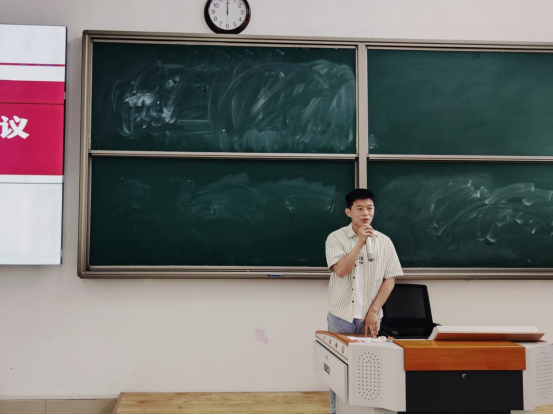 22级英语3班班长张克武、23级汉文8班团支书王雨露分别在会上做了交流发言,分享了班级和团支部的工作经验。