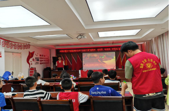 为弘扬爱国主义精神,增加儿童对红色历史的了解,“三下乡”团队成员赴宿州市三八社区组织少年儿童开展红色历史的主题课宣讲活动,主题宣讲不仅丰富了儿童的精神文化生活,更激发了儿童对于祖国的热爱。