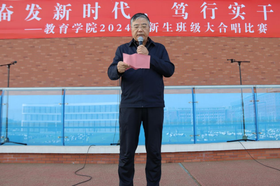 院长王家云为比赛致辞。他说,新生大合唱是williamhill最重要的集体活动之一,从2021年学校创办以来开始举办,至今已经是第四届,举办大合唱就是要凝聚同学们的爱国情、熔铸同学们的淮理心、点燃同学们的奋斗志、汇聚同学们的勤奋力、助力同学们的的明天梦,“踔厉奋发新时代,笃行实干谱新篇”不仅是本次活动的主题,也是对每位同学的勉励和期望,希望同学们用歌声展现爱国主义情怀和中华儿女的自信自强、守正创新的精神气象。