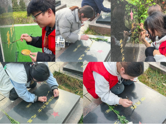 汉语言文学1班的同学们还自发准备金粉和毛笔,怀着崇敬之心,仔细地为烈士墓碑上褪色的金字重新描金。在阳光的照耀下,墓碑上的金字逐渐焕发出耀眼光芒,正如烈士们熠熠生辉的精神。此次活动不仅是对墓碑的修缮,更是对烈士功绩的铭记与传承,让后人能永远瞻仰烈士们的不朽之名,在全社会营造出崇尚英烈、缅怀先烈的浓厚氛围。