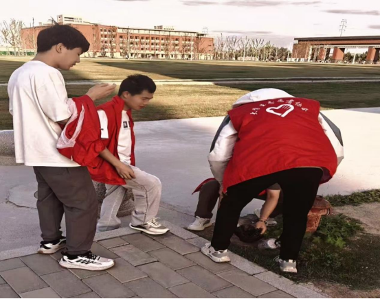教学楼周边是同学们日常活动的重要场所,也是此次清扫的重点区域之一。同学们手持扫帚,仔细清扫井盖和草坪上的落叶、纸屑,弯腰捡拾隐藏在草丛中的包装袋、果皮等垃圾,即便汗水湿透了衣衫,大家也没有丝毫懈怠,反而干得更加起劲。经过几个小时的努力,校园的环境焕然一新,同学们收获满满,一袋袋垃圾被运送到指定垃圾桶处理。