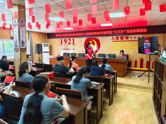 7月2日,实践队以淮海战役为主题,在港利社区党群活动中心对当地党员同志及群众代表进行红色故事宣讲。大家通过观看淮海战役的历史影像资料,深入探讨淮海战役中蕴含的伟大精神,红色精神在交流中得到进一步传承与弘扬。活动在众人齐唱《歌唱祖国》的激昂歌声中圆满结束。