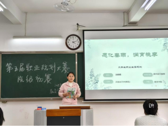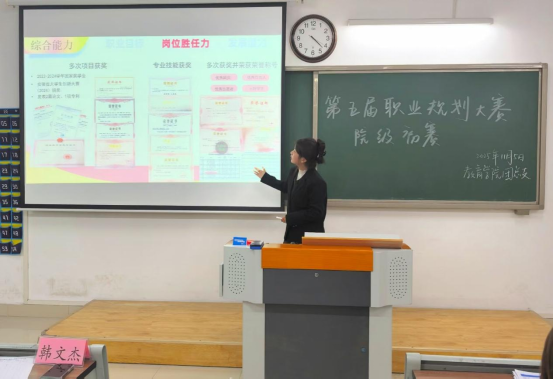 比赛过程中,成长赛道的选手们通过展示职业生涯PPT,将个人特质、专业所学与职业目标相结合,从职业目标、具体的学习实践行动、对学习实践活动的动态调整等方面进行叙述,从容自信,娓娓道来,勾勒出自身精彩的未来蓝图。