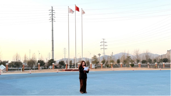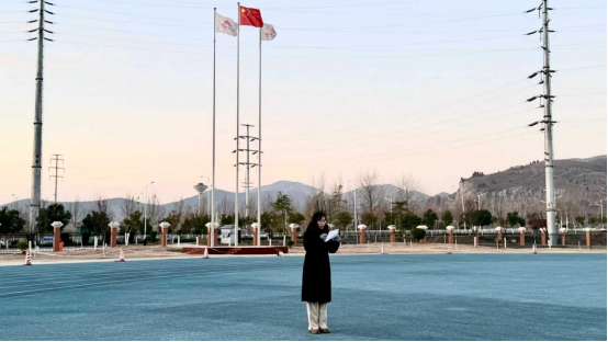 活动伊始,国旗护卫队迈着整齐有力的步伐护送五星红旗入场。在庄严的国歌声中,全体师生肃立注目,鲜艳的五星红旗在晨光中冉冉升起。