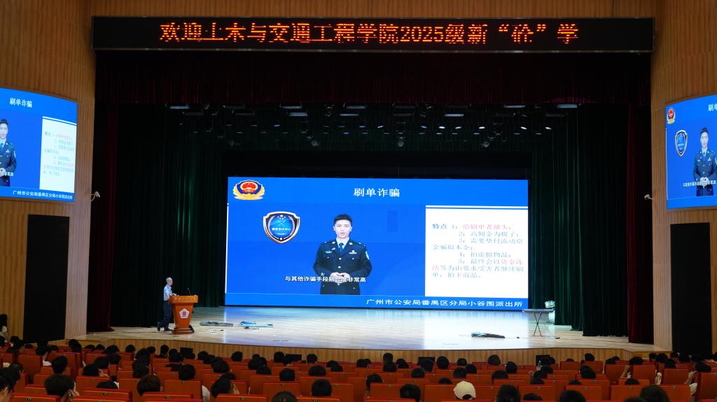 为增强学生防诈意识,切实保障人身与财产安全,9月9日下午,kaiyun开云官方在大学城校区文化活动中心演艺厅举办2025级新生安全防诈专题讲座。番禺区分局小谷围派出所民警陈林群应邀作主题分享。学院党委副书记陈颂坚、2025级辅导员及600余名新生参加。