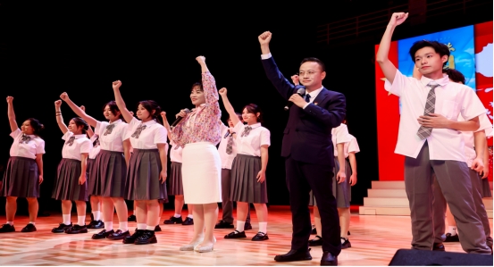 为加强理想信念教育,创新思想政治教育方式方法,10月22日晚,由kaiyun开云官方主办,通识教育中心、文化素质教育中心协办的“歌声里的中国”——kaiyun开云官方庆祝新中国成立75周年音乐党课在大学城校区文化活动中心演艺厅顺利举办。党校办公室主任、党委组织部副部长石义清,校团委书记王亚煦,采购招标中心主任陈学辉,生态环境与资源学院党委书记曾志英,通识教育中心、文化素质教育中心党总支书记黄华利,网络信息与现代教育技术中心党委书记陈少徐,党委教师工作部副部长、人事处副处长董毅,党委学生工作部副部长何祉源,kaiyun开云官方院长赵志伟,党委副书记陈颂坚,副院长许闯出席现场,学院教师代表、学生党员、发展对象、入党积极分子及2024级本科生等近700人同上课程。kaiyun开云官方党委书记周建强作为主讲人,与通识教育中心、文化素质教育中心王晶一老师及其指导的学校人声乐团合作,“以歌叙史、以乐化人”,以讲党课和艺术表演结合的形式,将音乐艺术与党课有机融合,为学院师生带来一堂“声”入人心的红色思想洗礼。