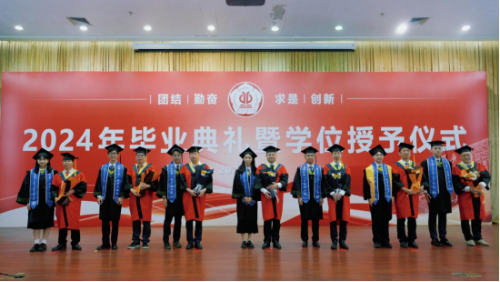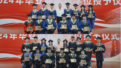 拨穗正冠、毕业礼成。2024届毕业生有序登台,赵志伟、郭永昌、吴希文、姜海波、冯为民、梁仕华、杨晚生7位授位教授与毕业生逐一亲切握手、正冠拨穗、颁授学位证书并合影留念。浓浓深情溢于言表,共同铭记学生生涯的高光时刻。