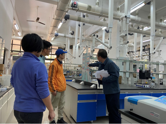 在结构工程实验室,杜星检查了高空的桥式起重机和耐久性干湿循环实验台相关特种设备的运营维护和管理情况;在建筑材料实验室,检查了搅拌机等设备运行维护情况;在岩土工程实验室,检查了实验室的装修和运行情况;在给排水实验室,检查了药品管理和实验室新建通风系统情况。