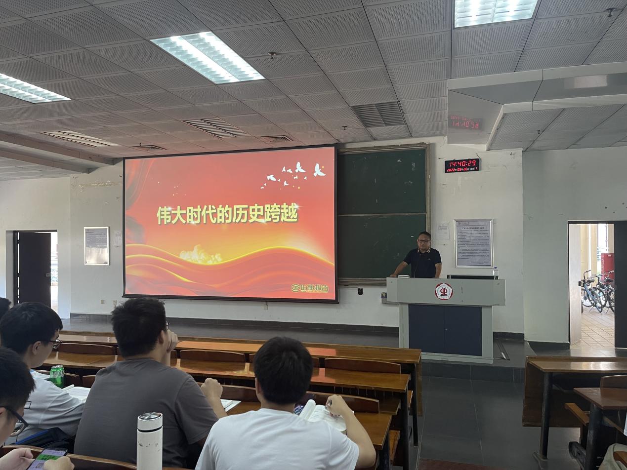 9月22日下午,我院党委书记邓俊以“伟大时代的历史跨越”为题为我院2021级建能和给排水4个班学生上了一堂生动的思政课。邓俊从新时代有新作为新成就、用好“有利条件”走好“必由之路”两个方面向同学们讲解了新时代党和国家事业取得的历史性成就、发生的历史性变革以及未来如何接续奋斗,希望同学们心中有大爱,肩上有担当,延续中国精神,勤奋学习,刻苦钻研,掌握过硬本领;未来到能发挥自己优势和特长的岗位上扎实工作、砥砺奋进,为国家发展奉献青春和汗水!