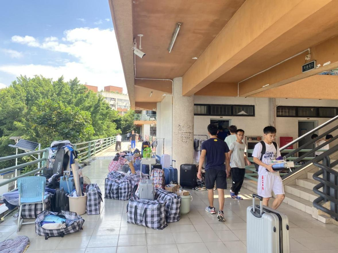 在正式搬迁之前,学院以宿舍为单位,发放了编织袋、洗衣机清洗液等物品,联系搬家公司为同学们搬运洗衣机等大件物品,招募志愿者帮助搬运行李,做好公共物品分配和搬入搬出登记,保证搬迁工作有条不紊进行。7月9日,浩浩荡荡的搬迁之旅,既有同学们打包行李、搬运包裹的勤劳背影,还有学院领导、各班级班主任、辅导员老师、搬家工人及志愿者们的忙碌身影,实现了“文明搬迁”“清洁搬迁”“有序搬迁”“和谐搬迁”。
