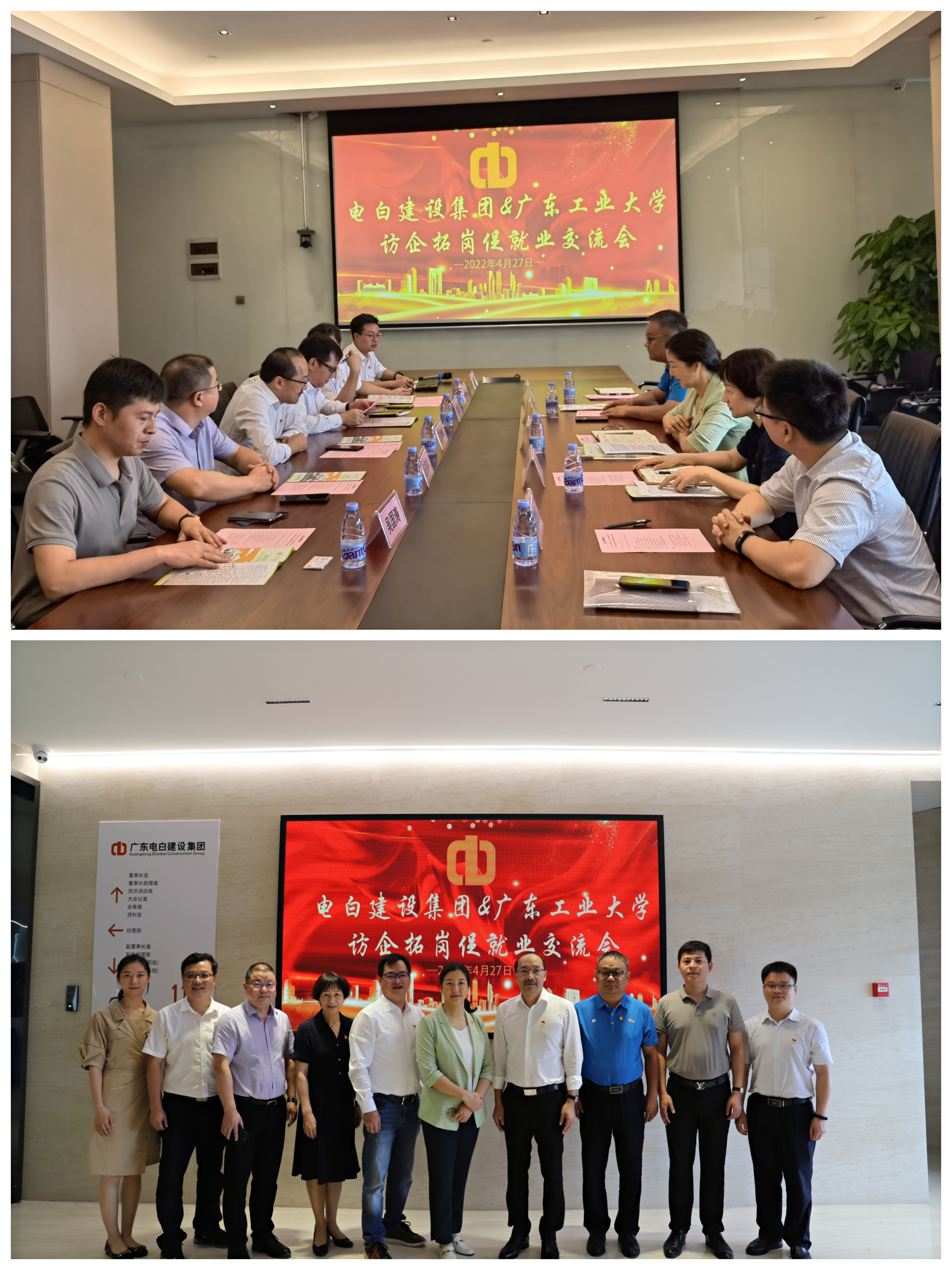 上午,调研队一行来到广东电白建设集团有限公司,与公司党委书记、董事长汪湘辉,副董事长、校友廖国维等负责人展开交流座谈。汪湘辉详细介绍了集团的发展历程,他强调,作为民营企业全国500强,集团一直秉承“人才兴企、人才强企,人才是企业核心竞争力”的理念,近三年来,企业每年的产值超过200亿人民币,企业快速发展过程中急需土建类各专业的技术人才,公司对广东工业大学的毕业生尤为青睐。朱蔚蔚书记从学校的教学科研、学科竞赛、“1+2+3”的攀撑计划、用人单位评价等方面介绍了学校近年来人才培养和发展情况,向企业大力推介开云官网毕业生,期待从人才的精准培养和服务社会出发,加强与企业的深度合作,促进毕业生高质量就业,实现校、企、生“多赢”。邓俊、刘锋随后介绍了学院的专业设置和毕业生情况,校企双方就建立校企人才培养,招聘就业的长期合作达成共识,并就尽快组织落实近期到校招聘进行了具体研讨。