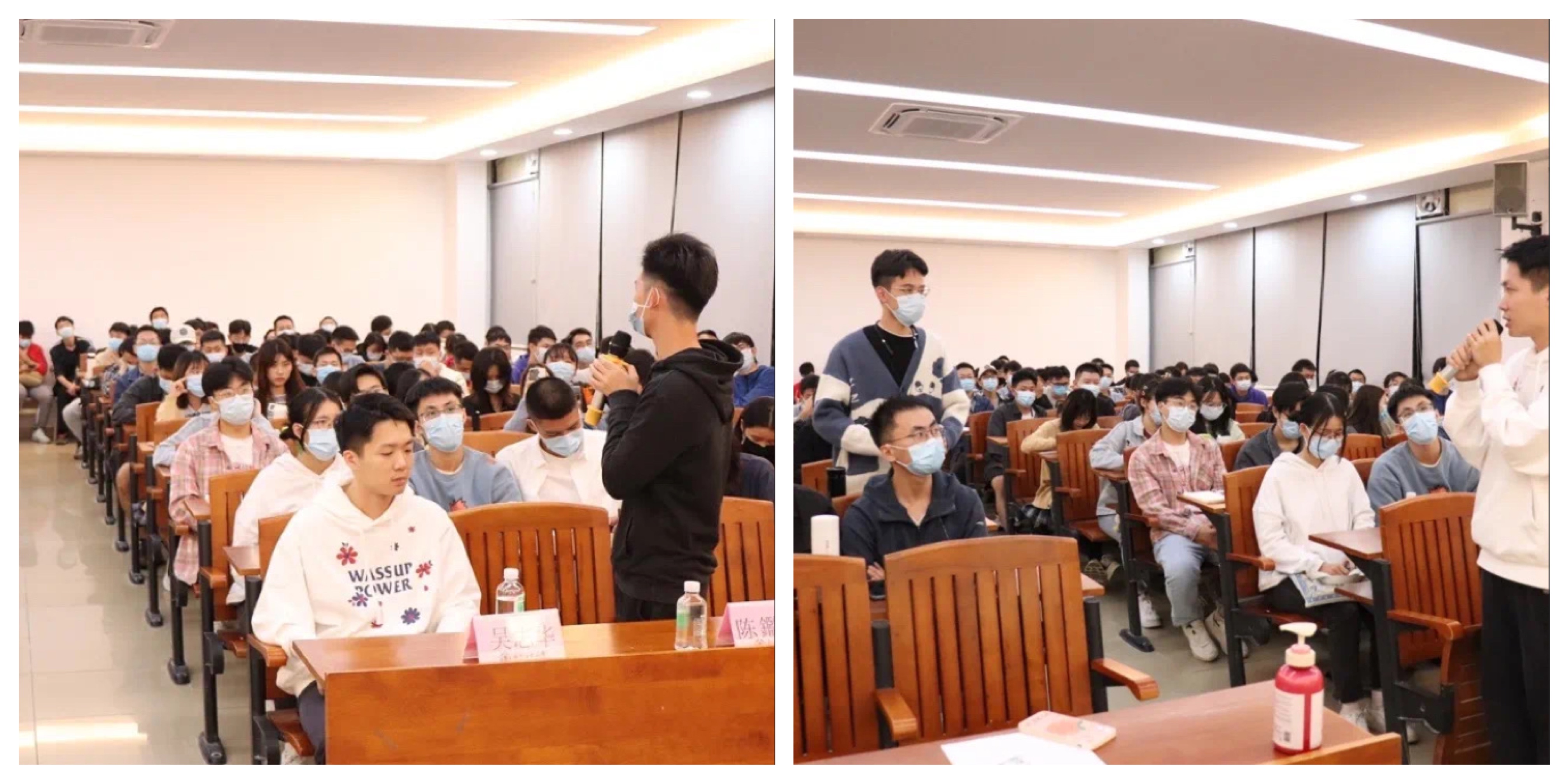 在现场互动环节,同学们踊跃提问,师兄们都耐心细致的解答了大家的疑问,现场气氛热烈,嘉宾们的精彩回答更是引起同学们的共鸣与阵阵掌声。