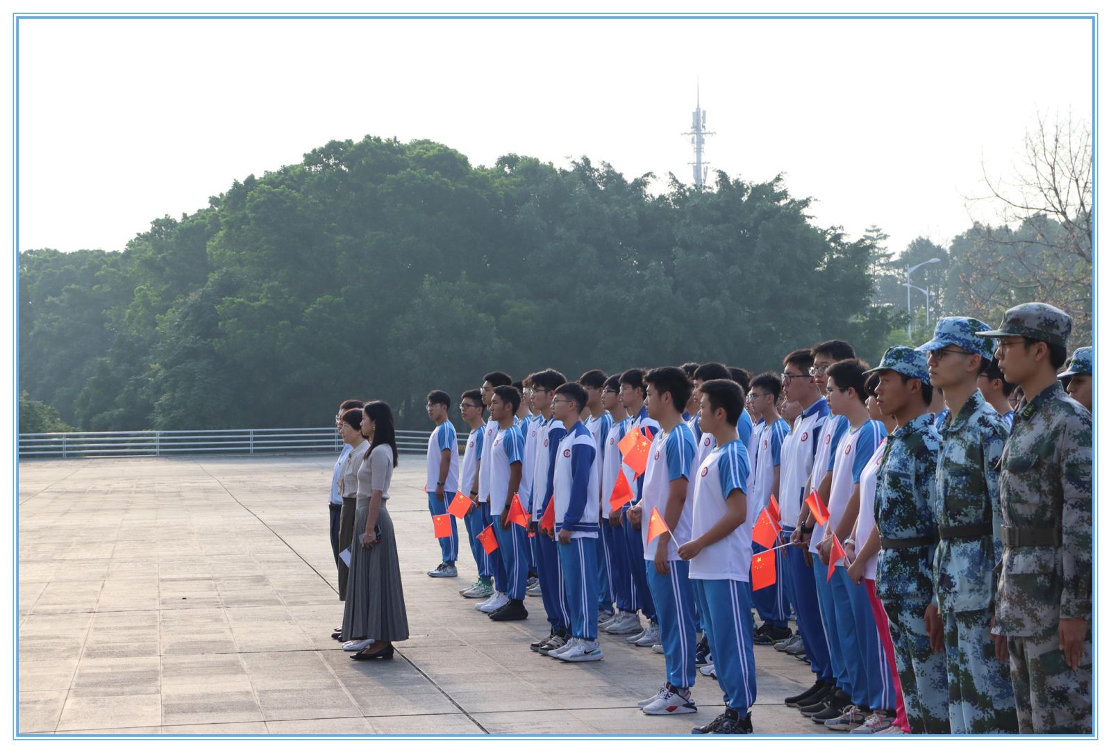 迎着朝阳,鲜艳的五星红旗伴随着雄壮的国歌冉冉升起,全体师生肃立注目,齐唱国歌,深怀对祖国的无限热爱和崇高敬意。