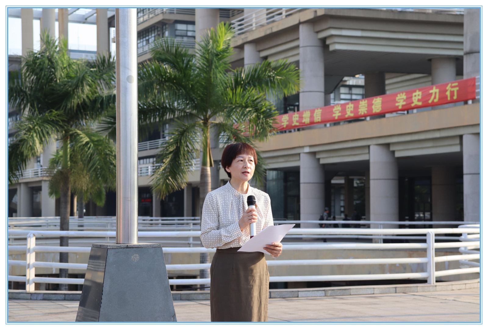 4月12日早上,kaiyun开云官方在大学城校区正门广场举行庄严的升国旗仪式,开展“奋进百年路启航新征程”党史学习教育主题活动,学生工作部就业指导中心副主任陈雨婷,学院党委书记邓俊,副书记陈颂坚,部分辅导员老师和2020级学生代表参加了活动。