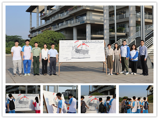仪式最后,全体师生激情昂扬合唱《歌唱祖国》,深情表达对社会主义祖国的热爱。随着激昂的歌声,陈洛浩和黄瑶同学现场创作简笔画,将升国旗仪式的场景描绘下来,向中国共产党建党100周年献礼。师生们也纷纷留言为中国共产党百年华诞献上深情祝福,表达在党的领导下向第二个百年目标奋勇前行的决心。(文:谢泽涛,图:何浩文,司徒信杰)