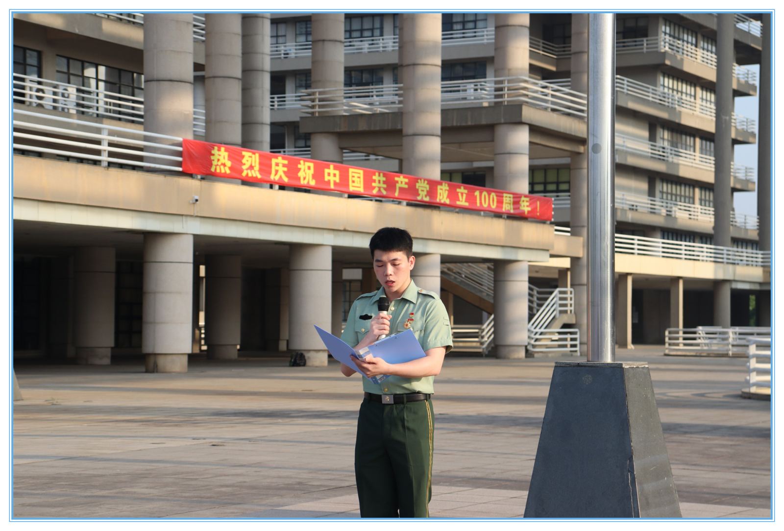 随后,学院退伍“优秀义务兵”邝永康同学在国旗下以《红旗飘飘,少年当自强》为主题进行演讲,结合中华人民共和国国旗诞生的党史故事,表达了当代青年不忘初心,志存高远,勇于迎接挑战,积极投身祖国国防建设热潮中的抱负。