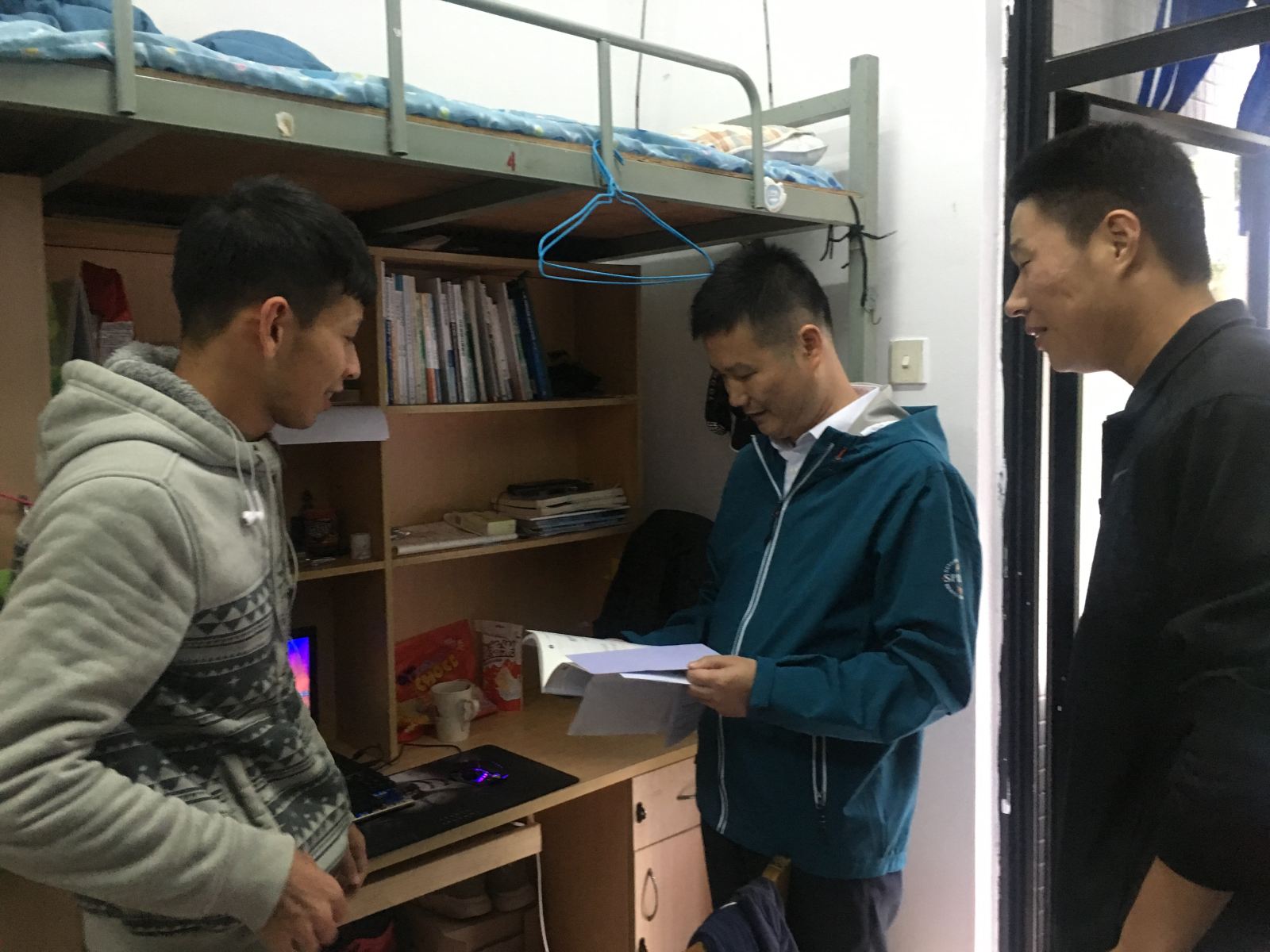 28日下午,为进一步加强宿舍管理力度,深入了解学生日常生活,排查宿舍安全隐患,我院党委张育广书记及辅导员对学院学生宿舍进行了走访。