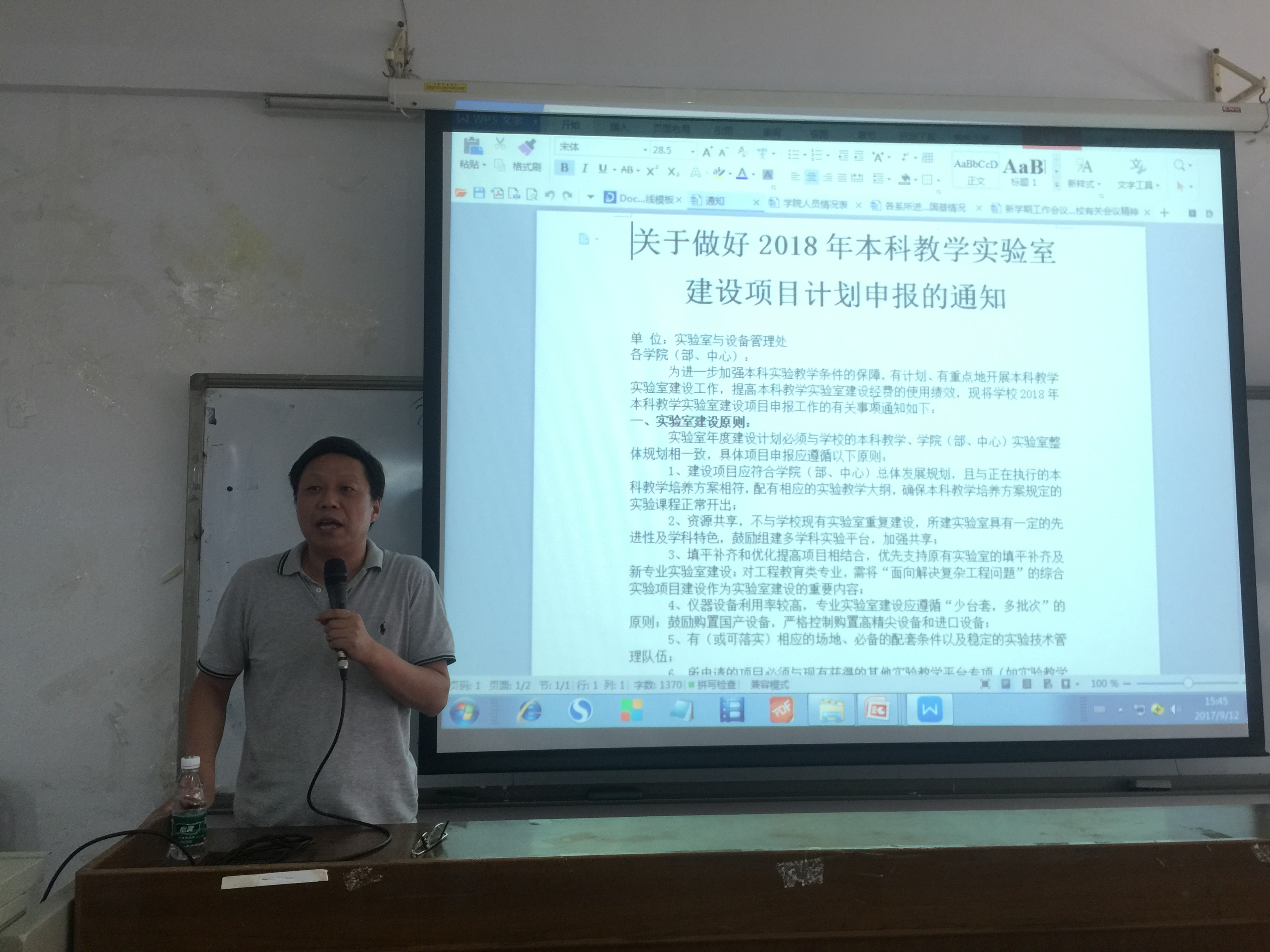 9月12日下午,我院在实验二号楼520召开了新学期工作会议,全体教职工参加,副校长陈立中莅临会议并作讲话。会议由学院党委书记徐向东主持。