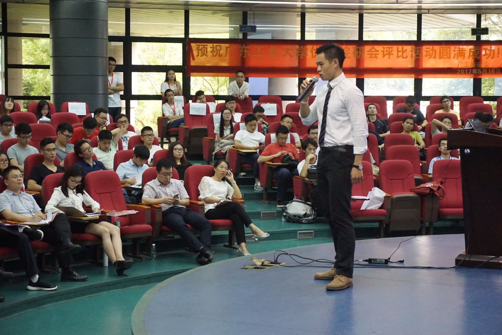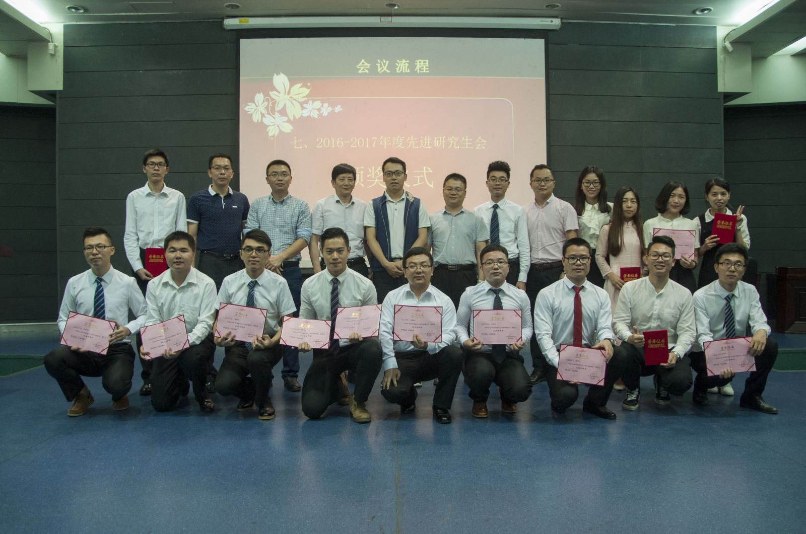 5月16日下午,广东工业大学研究生院在大学城校区大讲堂圆弧报告厅召开了2016-2017年度院研究生会评优会议。在大会上,我院研究生会主席黄形代表院研会在评优会议上从组织建设、文娱活动、学术科技活动、权益服务、个人分享等五个方面汇报了我院研究生会一年来的工作成果。经过激烈的竞争,我院研究生会荣获学校“先进院研会”称号,并获得最佳组织奖!
