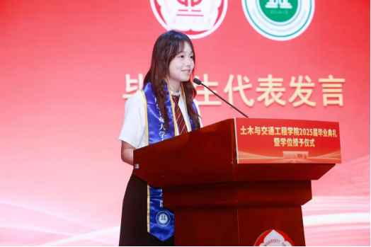 仪式在庄严国歌声中拉开帷幕。赵志伟代表学院祝贺2025届毕业生,并引领大家以“三声掌声”致敬师长、父母及支持学院发展的企业与校友。临别之际,他赠予毕业生“三把密钥”:一是勇敢启程,以务实迈出第一步;二是坚守初心,以诚信浇筑人生基座;三是开拓新路,以创新绘就时代蓝图。他寄语毕业生以专业精神立足社会,用赤子之心拥抱生活,既持奋进锐气,亦葆从容底气,祝福大家“桥架山河,路通天下”。