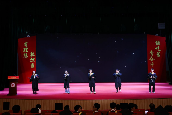典礼开始前,十余位师生代表领唱《找自己》、《老男孩》等歌曲,用歌声唱响青春活力与同窗之情。全场起立,用最热烈的掌声欢迎授位嘉宾入场。