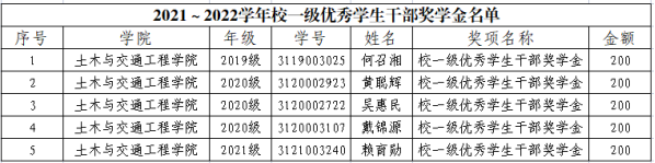 总计:优秀学生一等奖学金20名,优秀学生二等奖学金69名,优秀学生三等奖学金103名,优秀学生干部奖学金15名,学习标兵奖学金15人,学业进步奖学金56名。