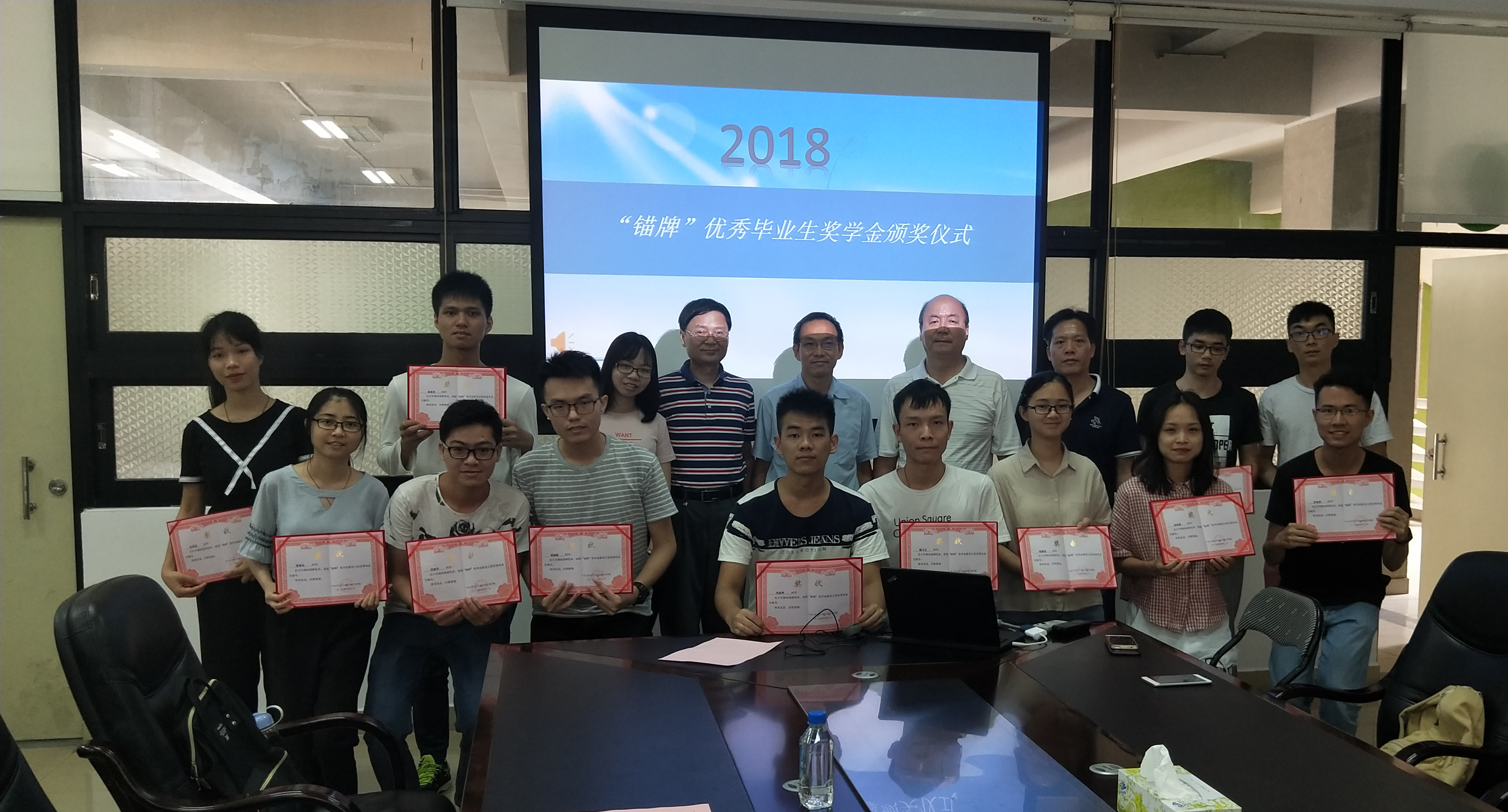 首先学院党委徐向东书记致辞,他代表学院欢迎中山环宇实业有限公司曾镇国先生一行到来,“锚牌”奖学金设立近二十年来,企业奖励了一批又一批的优秀毕业生,十分感谢企业对我院学子成长成才的关心与支持,其次,徐书记寄语2018届的毕业生同学,希望大家能够继承广工大的优良传统,在步入社会后,在工作岗位上能够勇于挑战自我,刻苦钻研,为社会发展贡献力量,同时,也不忘常回家看看。随后,郭维喜书记宣读了获奖名单。中山环宇实业有限公司的嘉宾和院领导分别为获奖学生颁奖并合影留念。颁奖结束后,获奖学生代表冯家辉发言。他回顾了自己四年走过的点点滴滴,本科科研经历直接影响了他的思考方式,如今也即将成为一名研究生,希望可以再次实现质的蜕变,为自己的职业道路创造更加坚实的路基。