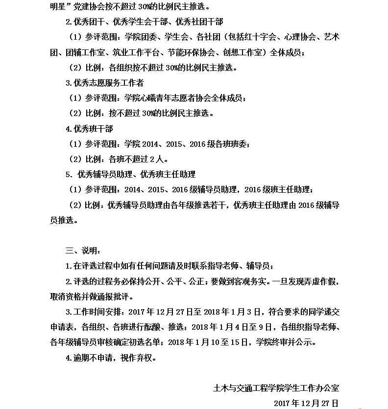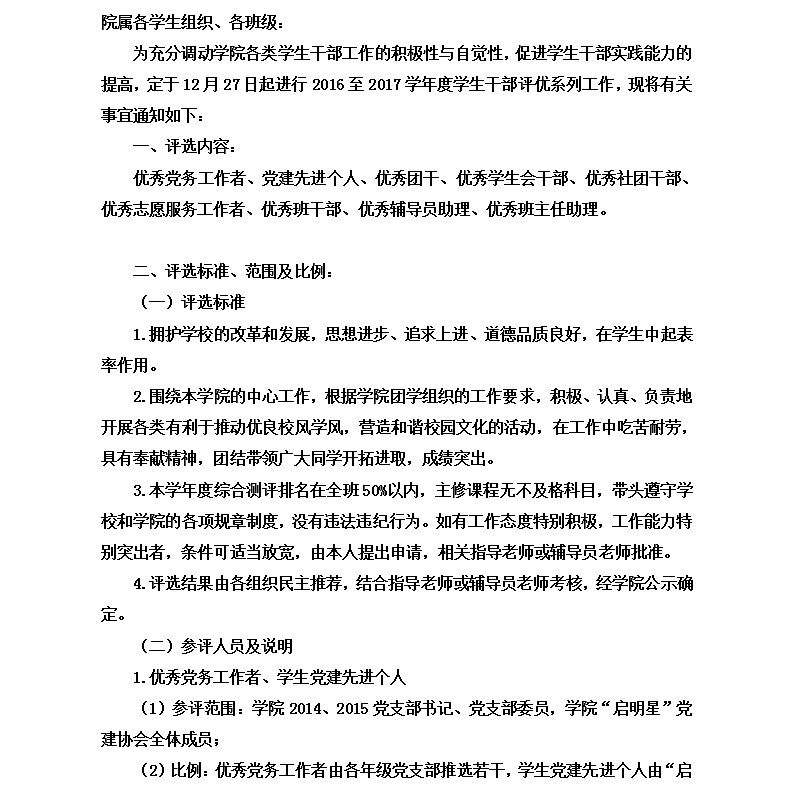 kaiyun开云官方2016至2017学年度学生干部评优工作通知