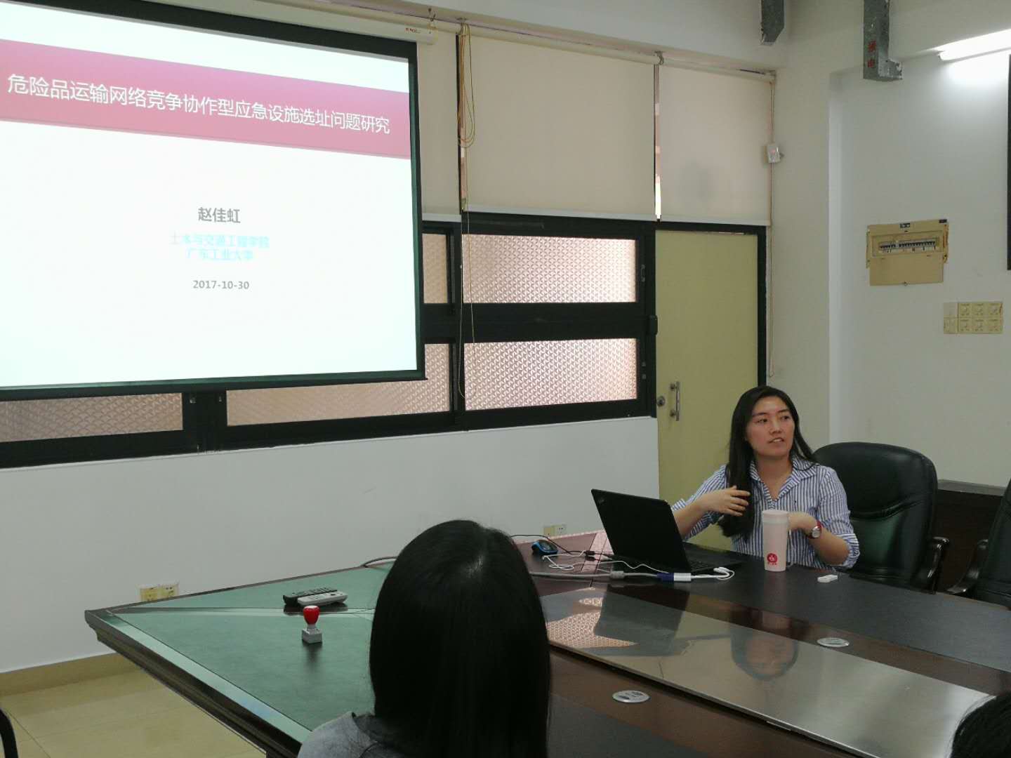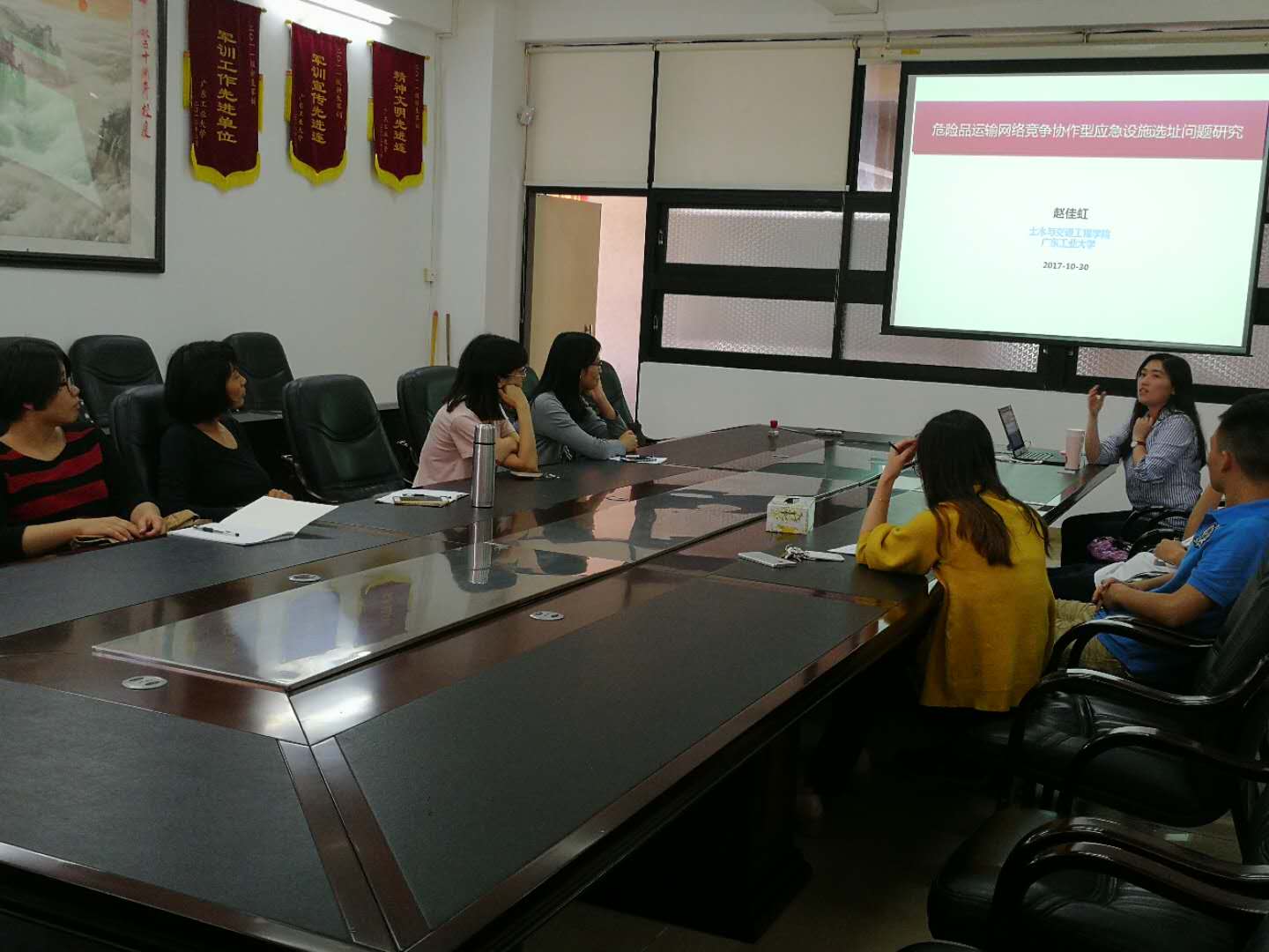 为提升我院学术气氛,促进教师间的科研思想交流,提高我院科研水平,2017年1030日下午,学院第14期科技交流系列讲座在实验二号楼502会议室举行。本期讲座邀请我道桥与交通运输系赵佳虹博士为大家做了“危险品运输网络竞争协作型应急设施选址问题研究”的学术报告。学院道桥与交通运输系王小霞老师、韩霜老师部分研究生参与了讲座和讨论。